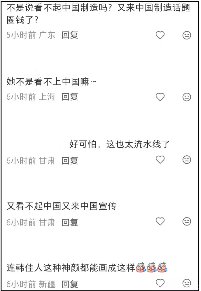 发现端倪的中国网友直接就在韩佳人评论区提出质疑,纷纷抵制她在中国平台圈钱。