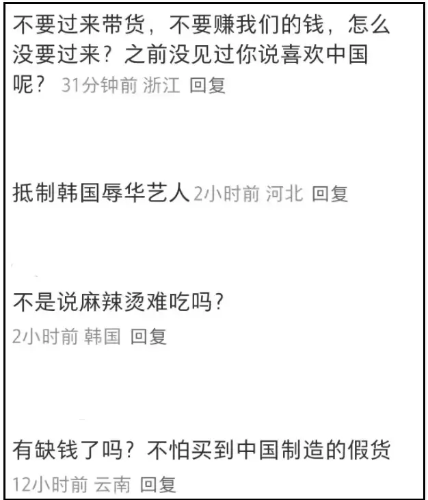 经历过无数韩星背刺的网友越来越敏锐了,在网友看来,韩国明星突然表现友好,总归是要图点啥。